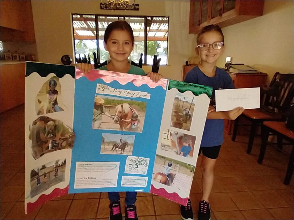 - Children from the River Oak Grace Community Church VBS raised over $2300 for the ranch, paying for all the materials for our new entrance sign, AND the new plumbing installed in the shop kitchenette, and bathroom, for our staff.