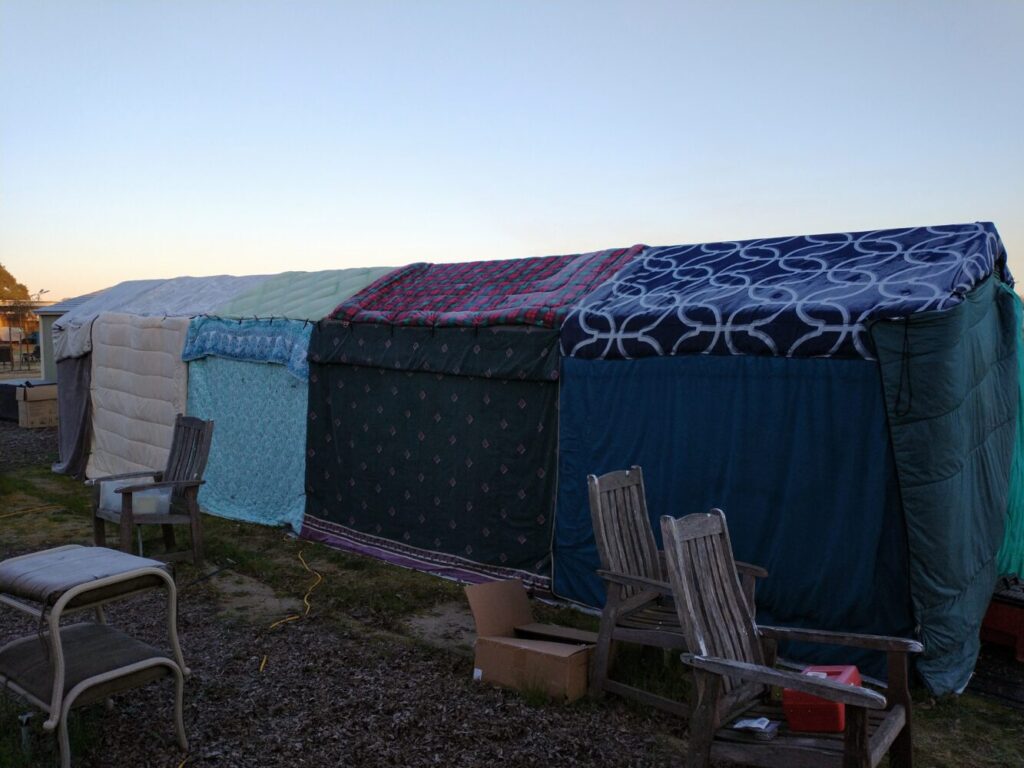- One very kind lady, Sandy, hits up thrift stores and sales any time we share a need for items, and leaves what she finds on our doorstep. This past spring, she gathered a literal truck load of comforters, and blankets, to cover our greenhouses when an unexpected week of freezing temperatures threatened our heirloom seedlings. She also collected mattress covers, many of them brand new, to cover our tender, young citrus trees. Not only that, but Sandy collected dozens of pairs of boots to add to those the children wear during sessions. Many of those were brand new, as well!